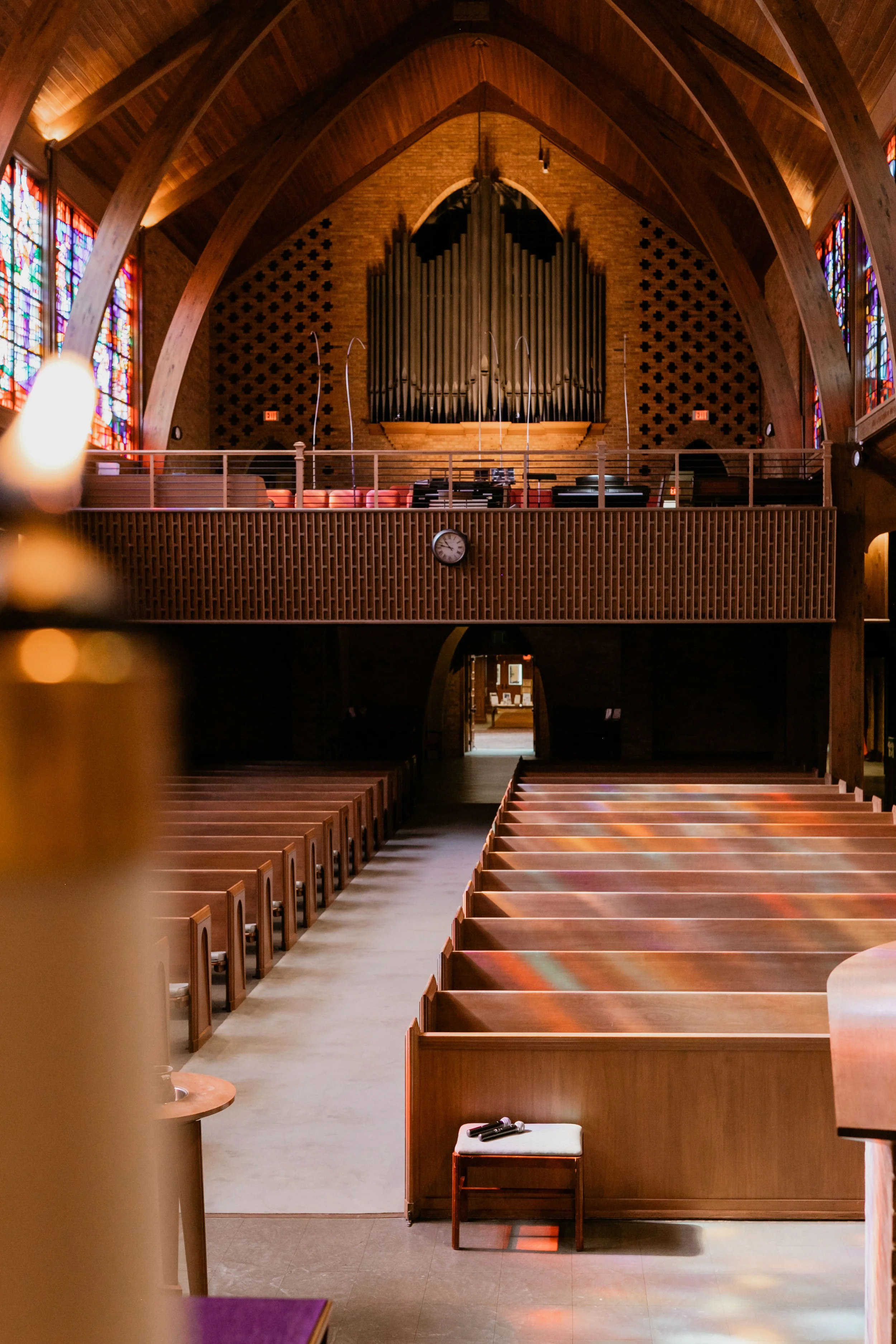 Accessibility: Handicap-accessible parking is available throughout our parking lot, and our church campus is fully accessible. In the Sanctuary, several pews include designated spaces at the ends to comfortably accommodate those using wheelchairs, allowing everyone to sit and worship with ease.